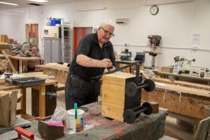 We now have a large recreation area where coffee and tea drinking is the order of the day along with stimulating conversation. We have a flourishing wood working and metal working area, a very busy and successful “Stick Makers” group who meet on a Tuesday evening and space for 17 artists which is used on a regular basis. We have a large model making area which caters for boatbuilding, model railways and model aircraft building, There is also an area that caters for upholstery work, and there is a finishing area to paint completed woodwork etc. items.